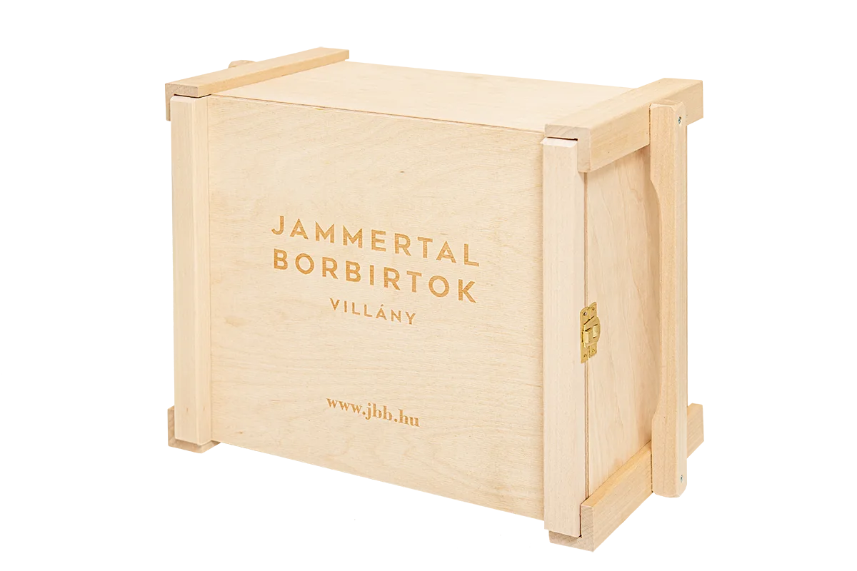 Rézcsatos 12 palackos faláda Jammertal Borbirtok logóval
